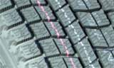 - スタッドレスタイヤ(残り溝約7mm、約30%摩耗)で時速60km/hからブレーキをかけると制動距離は22.5mで、時速80km/hでは、41.6mの距離で停止。